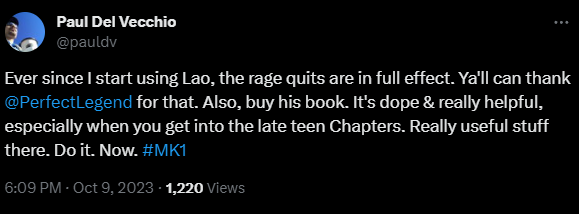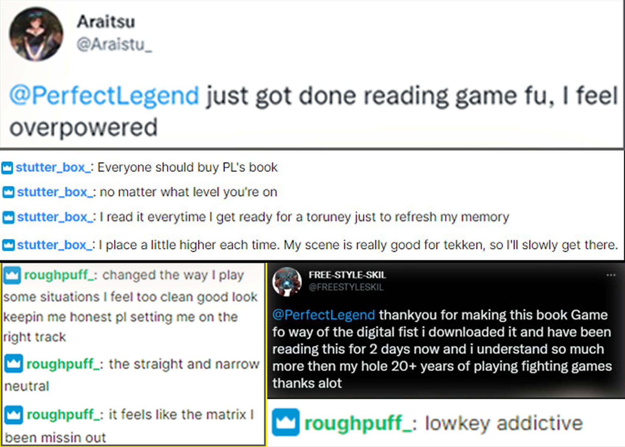 “That’s the book that will REALLY help out the community. People need to know that information! It’s a good book and as fighting games continue to grow, it could be a catalyst for newbies to use and get more acclimated into them. You hit the nail on the head with your descriptions and advice.”